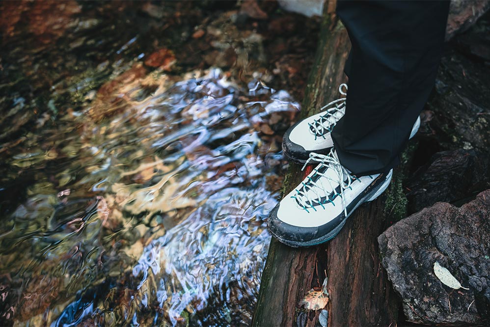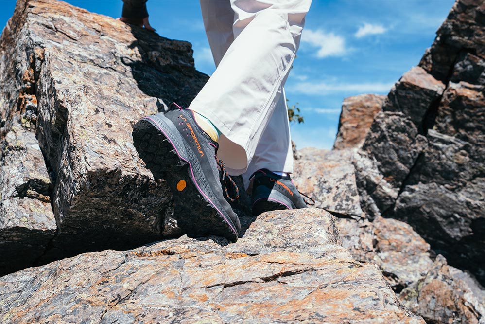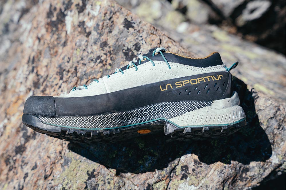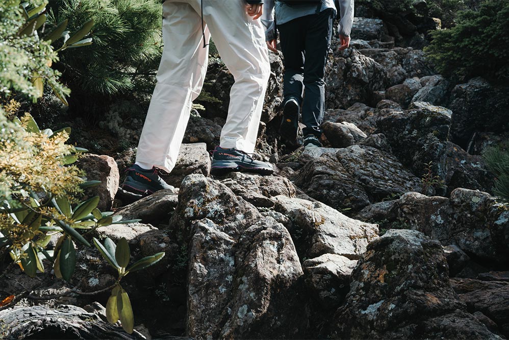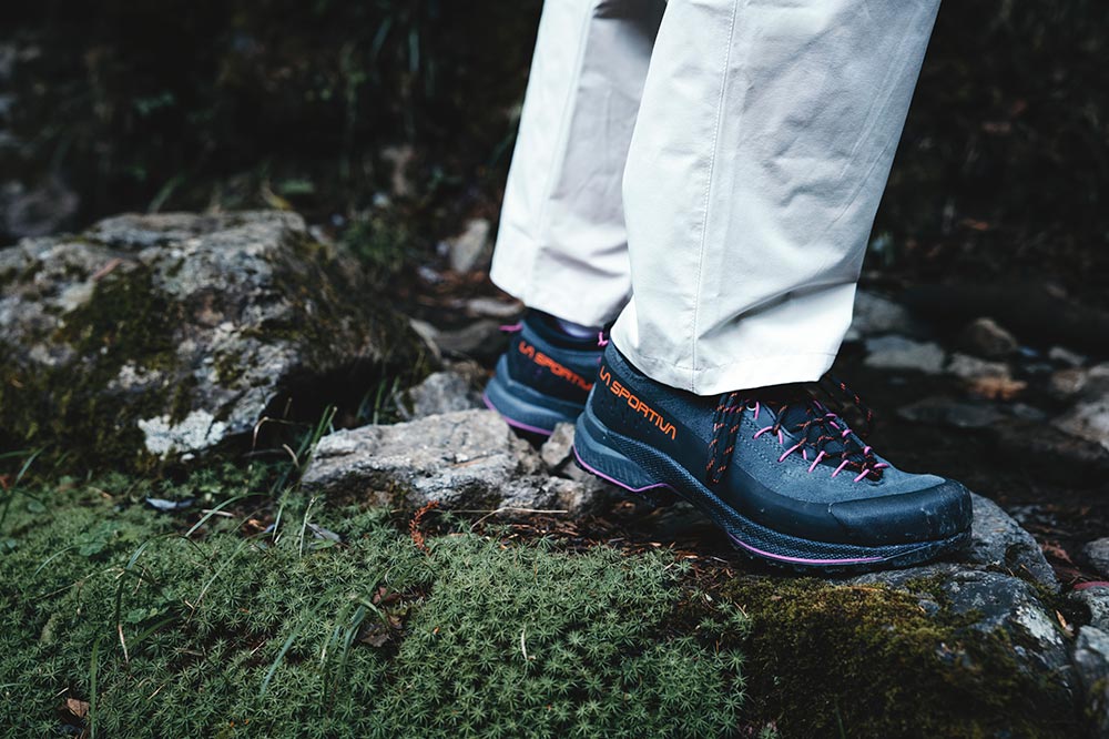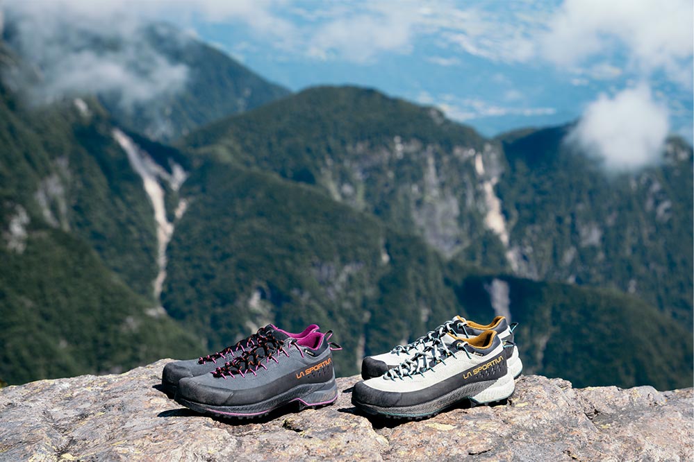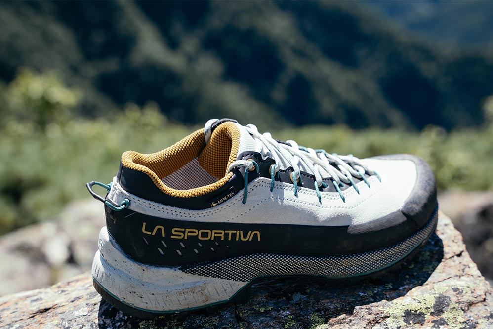 山歩きのパートナーにはスポルティバの「TX4 EVO」をチョイス。本来はクライミングの際、岩場まで向かうときに履くアプロ―チシューズとしてつくられたモデルだが、じつは岩稜を含む日帰り登山にちょうどいい一足でもある。