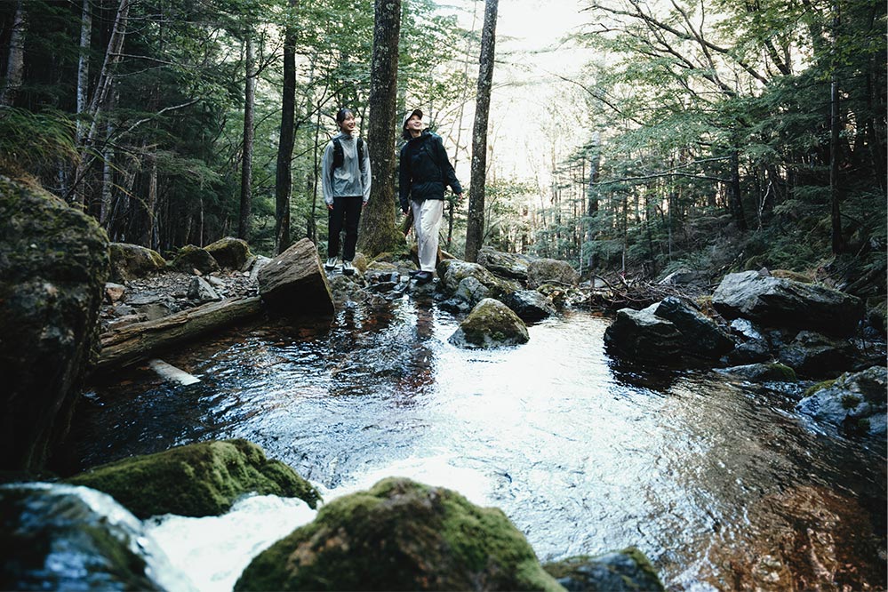 緑豊かな森と沢のせせらぎ、青々とした苔。徐々に陽が昇り、深い森のなかに木漏れ日が射し込む。遅れをとりながらも、森がよりいっそう、いきいきと華やぐ朝がやってきた。