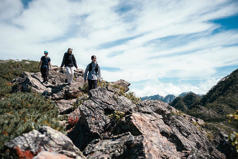 今回のマウンテンアクティビティは日帰り登山。「TX4 EVO」を履いて、夏から秋へと移り変わろうとする南アルプス北部の岩稜の山・栗沢山を目指す。登山を楽しむPediさん、せみさん、スポルティバの清水さんとともに歩いてきた。