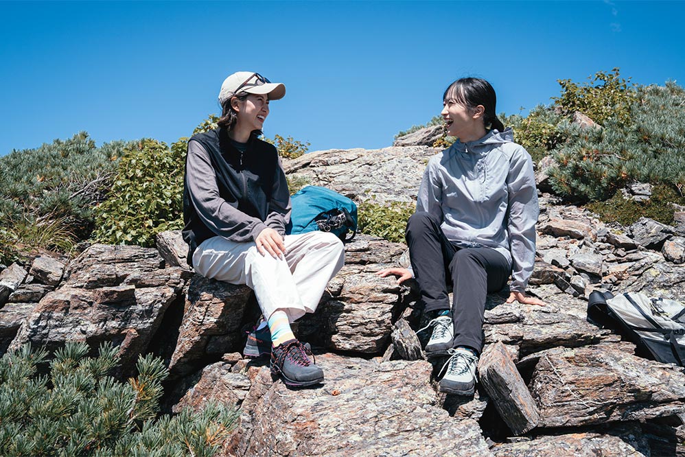 せみ「私は岩稜の山だったら日帰りでもエクイリビウムGTXを履くかな。だから普段からローカット派ではないんだけど、ソールの堅いローカットというのは初めてで、すごく新鮮! でも日帰りだったらこれで行けると思えた。テント泊の縦走だと、やっぱり足を捻るのが怖いからハイカットがいいけど」